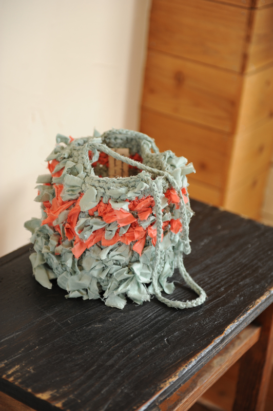 スクラップクロシェとは、糸ではなく布をかぎ編みして出来上がった作品の総称です。